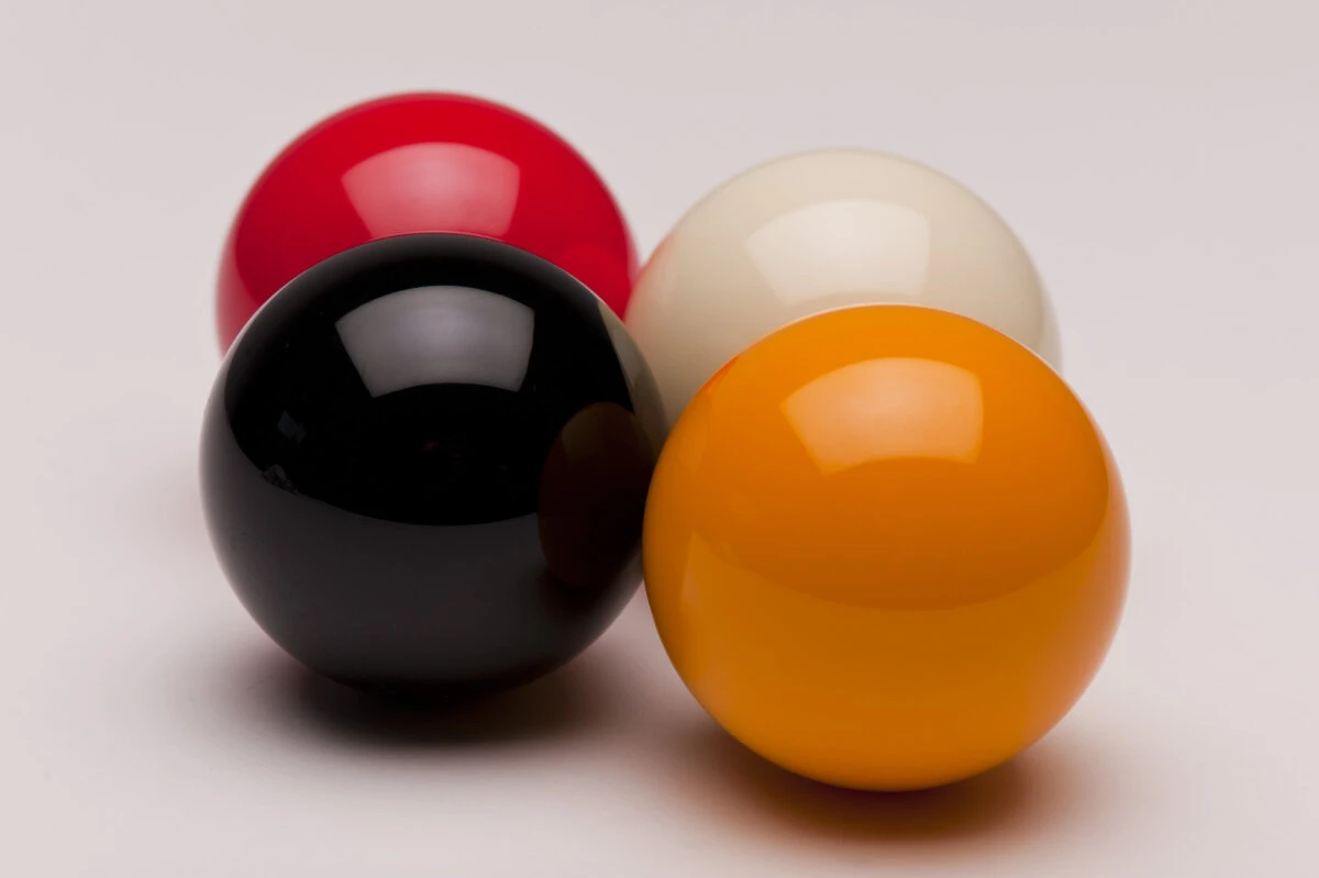 Die Standard-Snooker-Kugeln von Aramith in 52mm Durchmesser (Snooker-Norm).