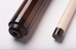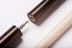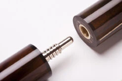Das Break-Jump-Queue „Powerbreak“ gibt es in mehreren Designs. Das Modell „Deluxe“ ist in dunkelbraun mit edlen Verzierungen gestaltet. Es verfĂĽgt ĂĽber ein hartes Oberteil mit besonderem Schliff sowie eine schwarze Bakelit-Ferrule. Damit ist das Break besonders hart und trotzdem kontrolliert. Dank der weiteren Teilung des Unterteils und der Kunststoff-Ferrule fĂĽhren Sie Jump-Shots einfach und kontrolliert aus. Beide Gewinde sind mit einem Schnellverschluss versehen und damit schnell abschraubbar.
