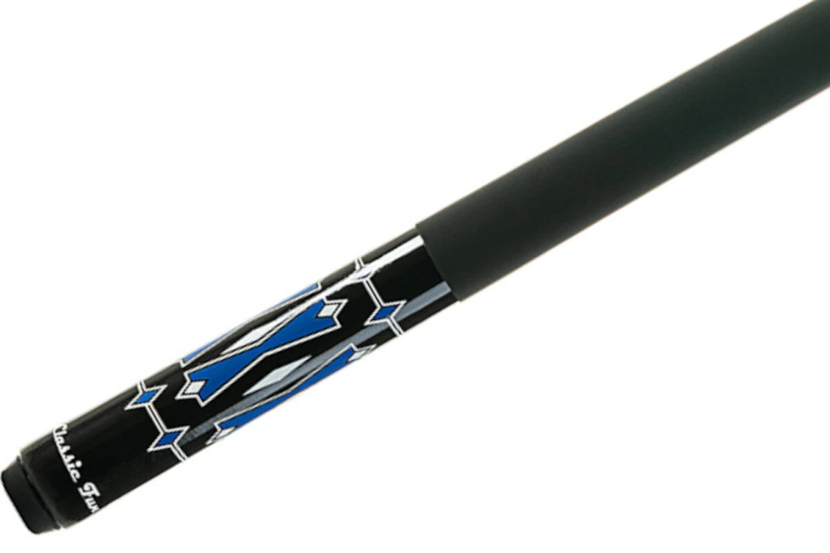 Wenige Queues in der unteren Preisklasse verfügen über eine so tolle Optik wie die zwei Modelle der Serie Classic Fun. Auch wenn es sich hierbei um keine echten Einlegearbeiten handelt, so ist die Dekorkombination von rot sowie blau und schwarz, äußerst attraktiv. Das Oberteil ist aus Ahornholz und die robuste Gewebeferrule mit einem 13mm Klebeleder versehen. Der Griffbereich besteht aus einem schwarzen Super-Grip Kunststoffbezug! Ideal für alle Freizeit und Hobbyspieler! Prima Preis-/Leistungsverhältnis..