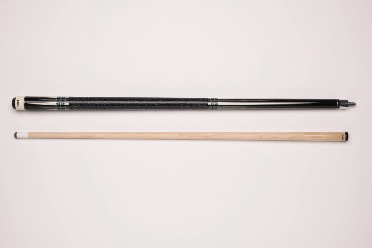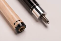 Die Billardqueues aus der BE0-Reihe von CUEL sind die perfekten Begleiter für Hobby- und Freizeitspieler sowie Einsteiger im Vereins-Poolbillard. Die zweiteiligen Queues haben eine Gesamtlänge von ca. 148 cm, was der klassischen Länge eines traditionellen Billard-Queues entspricht und ein Gewicht von 19-20 Unzen. Sie sind mittig geteilt und lassen sich in allen handelsüblichen Billardtaschen oder Billardköchern gut transportieren. Diese Pool-Queues überzeugen optisch mit verschiedenen schicken Printdesigns in Einlegeoptik, die sich den handgemachten Einlegearbeiten bei vielen hochpreisigeren Queues orientieren. Am hinteren Ende des Queues und über dem Abschlussring des Oberteils sind die Queues mit einem schwarzen CUEL-Logo versehen. Die Oberteile dieser Poolbillard-Queues sind aus Vollholz gefertigt, was für eine lange Haltbarkeit und konstantes Spielverhalten sorgt. Jedes Queue ist mit einem Lepro-Klebeleder ausgestattet und mit einem 5/16-18-Gewinde aus Metall verschraubt. Am Unterteil sorgt ein gewickeltes Griffband aus irischem Leinen für Sicherheit und einen optimalen Griff beim Stoß.