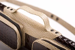 Gucci lässt grüßen… Mit diesem edlen Köcher ist Ihr Billardqueue unter Umständen besser gekleidet als Sie. Der Köcher fasst zwei komplette Queues, jeweils zwei Unter-und zwei Oberteile. Und hat einen praktischen Schultergurt sowie einen Tragegriff. Die beiden Seitentaschen fassen eine Menge Billardzubehör, in die größere Seitentasche passt auch das Unterteil eines Jump-Queues.