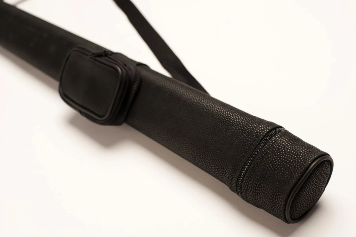 Mit diesem Köcher ist Ihr Billard-Queue immer sicher. Einfacher und gut verarbeiteter Köcher mit schönem genopptem Kunstleder als Obermaterial für ein zweigeteiltes Queue. Mit einem Tragegriff und zwei sicheren Metallverschlüssen.