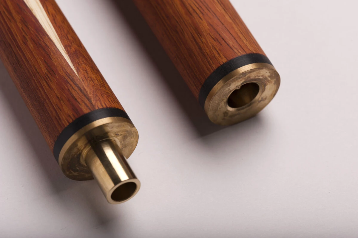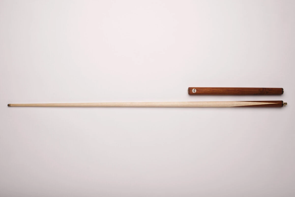 Ein schönes Einsteiger-Queue in schlichtem, klassischem Design mit 9,5mm breitem Qualitäts-Klebeleder. Auch zu diesem Preis erhalten Sie dieses Queue schon mit echt gesplicetem Dekor. Das heißt, dass die dunklen Spitzen („Splices“) durch Verleimung verschiedener Hölzer entstehen und nicht aufgemalt oder geklebt sind. Anders als bei den meisten Snooker-Queues sehen Sie bei diesem Modell die natürliche Maserung der Esche. Normalerweise wird bei Snooker-Queues das Holz eingefärbt, wodurch die klassische schwarze Maserung entsteht. Bei diesem Queue wurde darauf verzichtet. Das Queue ist 3/4-geteilt und benötigt zum Transport somit einen entsprechenden Snooker-Koffer.