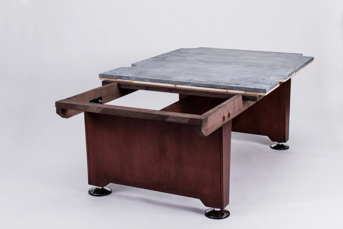 - Aufbauhelfer: Auch beim Aufbau des Tisches muss mindestens eine kräftige Person zugegen sein, da der Tischaufbauer die Schieferplatten nicht alleine auf den Unterbau heben kann. Bitte planen Sie dies bei der Terminabsprache mit dem Tischaufbauer ein.