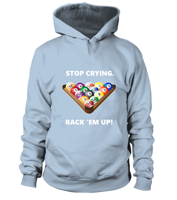 Der Tisch ist schief. Die Kugeln kleben. Es ist zu laut. Und außerdem hast Du ja eh nur Glück. Kommt Dir dieses Gejammer anderer Billardspieler bekannt vor? Dann zeig Ihnen mit diesem Shirt, was Du von dem Geheule hältst und sag Ihnen: „Stop crying, rack ‚em up!“