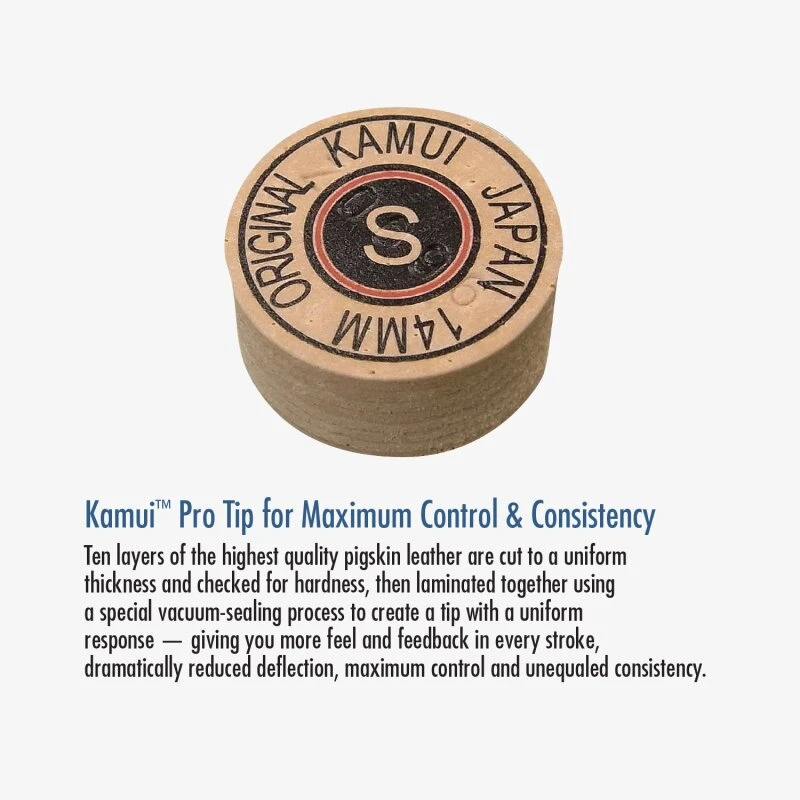 Die Pommeranzen von Kamui Braun sind aus feinstem Schweineleder, die sorgfältig nach Qualität ausgewählt und laminiert werden, um absolute gleichmäßige Qualität und die beste Leistung zu gewährleisten. Kamui-Leder haben eine höhere Elastizität und halten Kreide besser als Standard-Marken, für eine Spitze, die Dynamik besser annimmt, sodass Sie mit weniger Geschwindigkeit mehr Wirkung übertragen können und damit eine höhere Präzision erreichen.