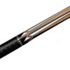 Das Queue kommt ab Werk mit einem Zero Flex Slim® Solid Core Low Deflection Technology Shaft der neuesten Generation. Die Weiterentwicklung dieses 11,75 mm-Oberteils besticht mit absoluter Geradlinigkeit, die Stoßabweichung wird extrem minimiert. Es gibt kein „klickendes“ und hohl klingendes Feedback beim Stoßen. Auf dem fein geschliffenen Pro-Taper sitzt ein 11,75 mm Premium Tiger Everest Leder.