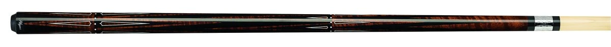Dieses Schmuckstück mit Namen AC-20 tritt eher klassisch auf, mit einem Walnussholz-Printdesign auf Schlangenholz am Unterteil und dem traditionellen Design mit Points in schwarz und weiß. Das Butt Cap besteht hier aus schwarzem Implex-Material.