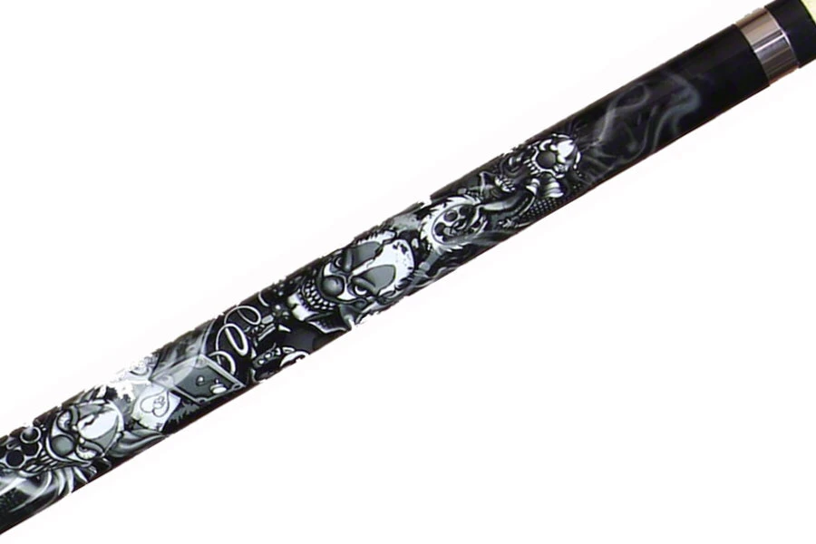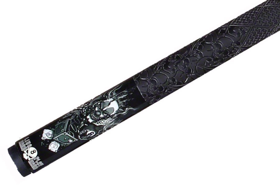 Der Horror-Clown unter den Queues: Wer mit seinem Queue Angst und Schrecken am Tisch verbreiten will, sollte sich dieses Modell mal ansehen. Das nachtschwarze Queue aus Grade-A-Hartholz-Ahorn ist mit Killer-Clown-Motiven verziert. Der gummierte Griffteil kommt dazu passend im schwarzen Totenkopf-Muster daher.