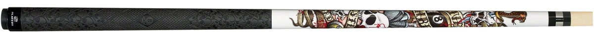Für echte Hustler: „Live Hard – Hustle Hard“ ist das Motto dieses klassischen Queues aus Grade-A-Hartholz-Ahorn mit tattoo-inspirierten Verzierungen rund um eine schwarze Acht. Der gummierte Griffteil kommt dazu passend im schwarzen Totenkopf-Muster daher.