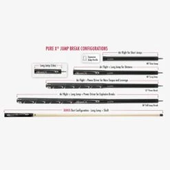 Die neuen Break-Jump-Queues von Players mit der Pure-X-Technologie geben Ihnen ultimative Kontrolle über Ihr Spiel. Das Queue verfügt über vier Schnellverschlüsse, mit denen Sie für jeden Stoß die perfekte Konfiguration finden können. Nutzen Sie den vorderen Air Flight-Teil mit ergonomischen Griff für superkurze Jumpshots, ergänzen Sie den Jump-Extender für längere Jumps, kombinieren Sie Air Flight und Power Driver zu einem verkürzten Break-Queue, um mehr Power und Hebel zu erzeugen und verwenden Sie Air Flight, Long Jump und Power Driver für explosive Breaks in der gewohnten Länge.