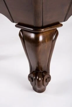Die vier massiven Füße des Billardtisches sind die Grundvoraussetzung für den stabilen Stand des Untergestells. Die Unterkonstruktion aus massiven Holzträgern mit Justierschrauben, hat sich seit Jahren bei Turniertischen international als bewährter Standard etabliert. Der Tisch verfügt über eine dreiteilige, 2,5 cm dicke Schieferplatte und liefert damit den gleichen Standard und die gleiche Präzision wie Turniertische bei internationalen Wettbewerben. Wenn Sie also einen professionellen Tisch Ihr eigen nennen wollen, gleichzeitig auf klassisches Design nicht verzichten mögen, ist der Poolbillardtisch Charles Ihre perfekte Wahl.