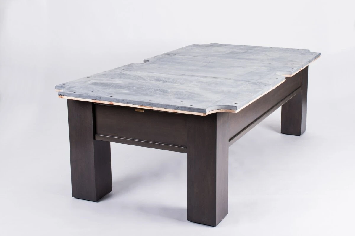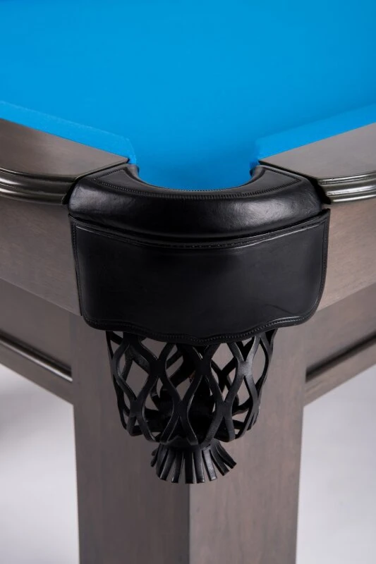 Der gesamte Tisch ist aus massivem Holz konstruiert und garantiert damit höchste Stabilität, Spielfreude und Langlebigkeit. Die Taschen sind aus echtem Leder gefertigt und unterstreichen die exklusive Note des Tisches. Die Oberfläche ist komplett in grau gebeizt.