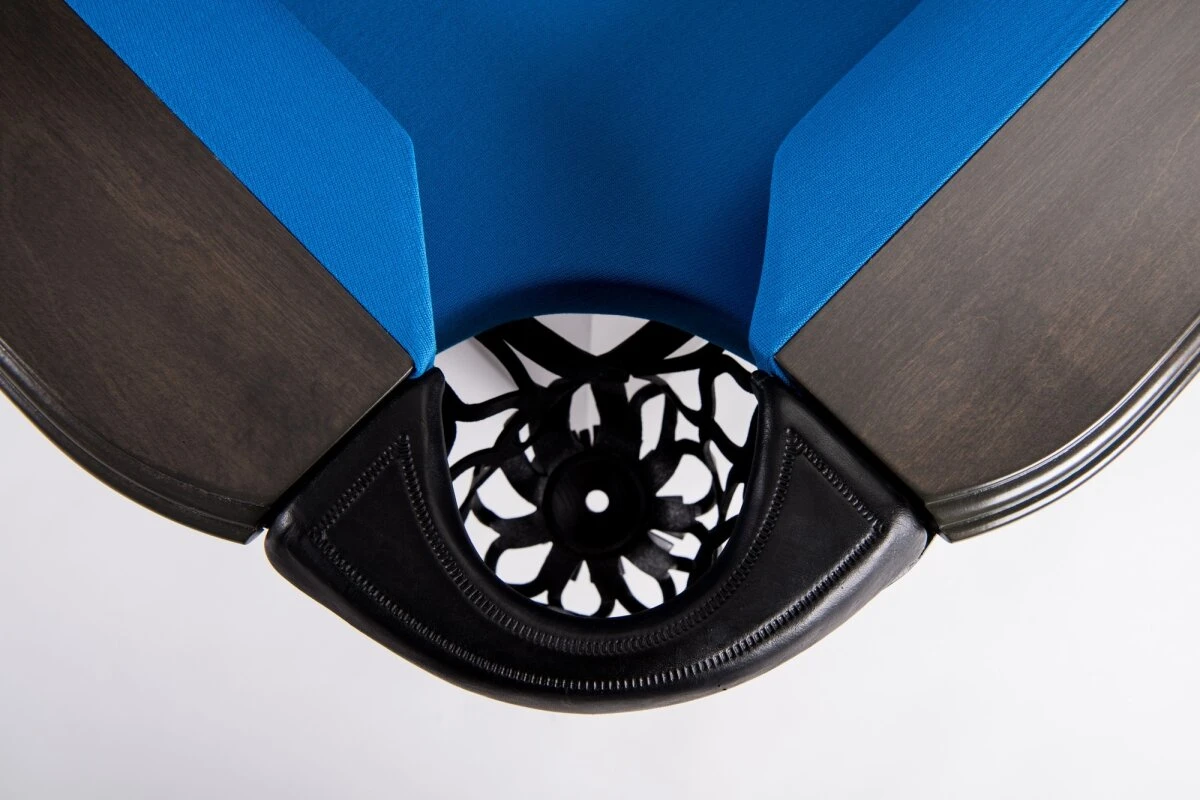 Wie bei Turniertischen üblich, verfügt der Tisch über Ballauffangtaschen ohne Rücklaufsystem. Der Tisch wird inklusive unseres Standard-Tuchs Andy 777 geliefert, welches bei internationalen Turnieren in Asien Standard ist. Sollten Sie ein anderes Tuch wünschen, können Sie das bei der Produktauswahl festlegen.