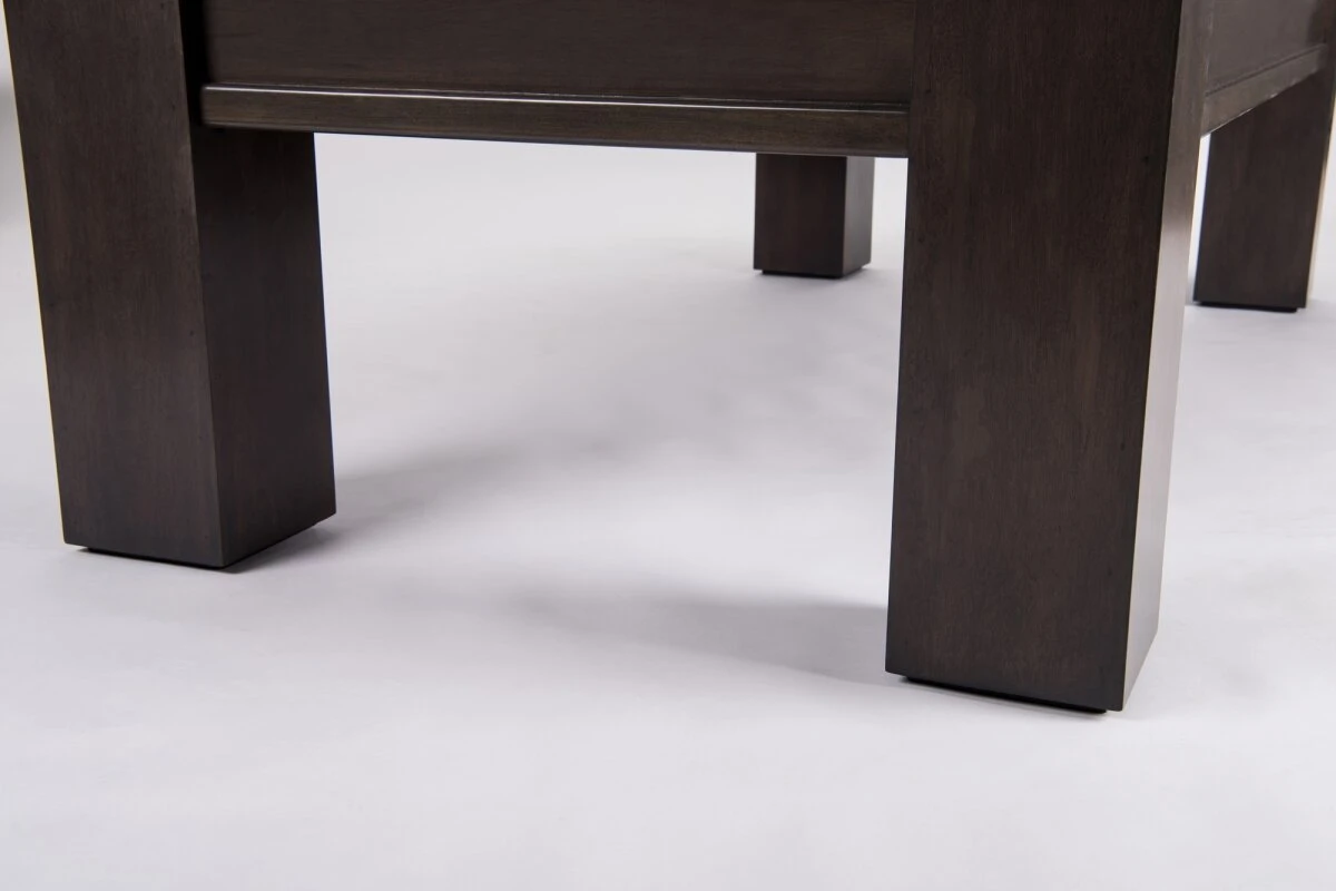 Die vier sehr massiven Füße des Billardtisches sind die Grundvoraussetzung für den stabilen Stand des Untergestells. Die Unterkonstruktion aus massiven Holzträgern hat sich seit Jahren bei Turniertischen international als bewährter Standard etabliert. Der Tisch verfügt über eine dreiteilige, 2,5 cm dicke Schieferplatte und liefert damit den gleichen Standard und die gleiche Präzision wie Turniertische bei internationalen Wettbewerben. Wenn Sie also einen professionellen Tisch Ihr eigen nennen wollen, gleichzeitig auf klassisches, zeitlosenDesign nicht verzichten mögen, ist der RICHARD Ihre perfekte Wahl.