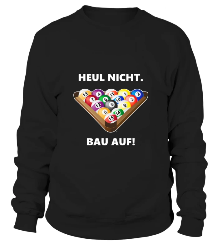 Der Tisch ist schief. Die Kugeln kleben. Es ist zu laut. Und außerdem hast Du ja eh nur Glück. Kommt Dir dieses Gejammer anderer Billardspieler bekannt vor? Dann zeig Ihnen mit diesem Shirt, was Du von dem Geheule hältst und sag Ihnen: „Heul nicht. Bau auf!“