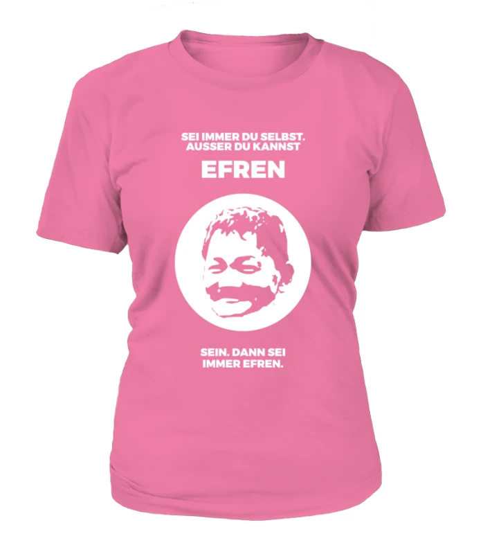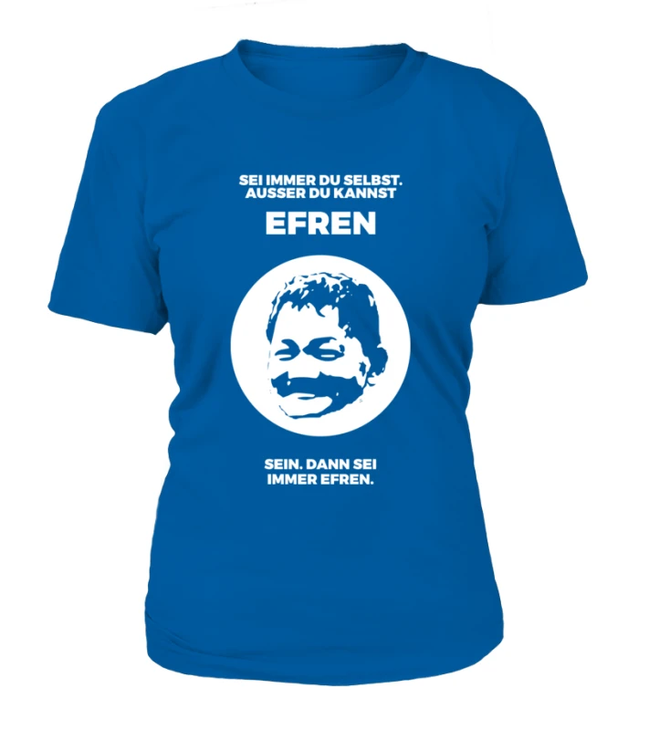 Jeder Mensch sollte stets er selbst sein. Es sein denn, man kann der Größte aller Zeiten sein. Wenn es am Tisch mal nicht weiter geht und ein Geniestreich her muss, dann zieh Dir einfach dieses Shirt an und sei der Größte aller Zeiten! „Sei immer Du selbst, außer Du kannst EFREN sein.“