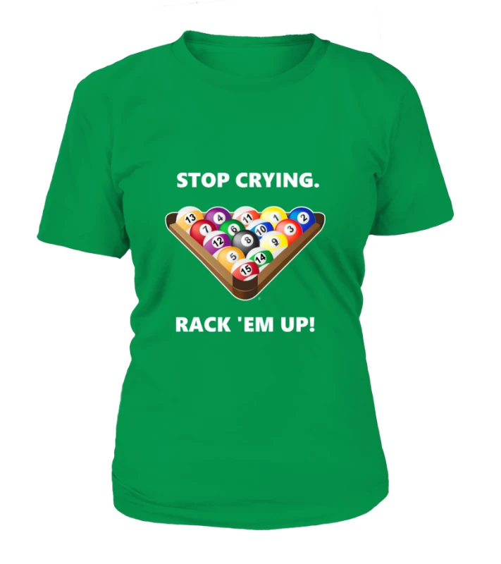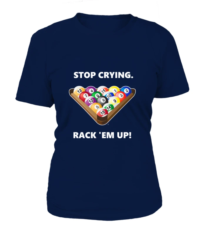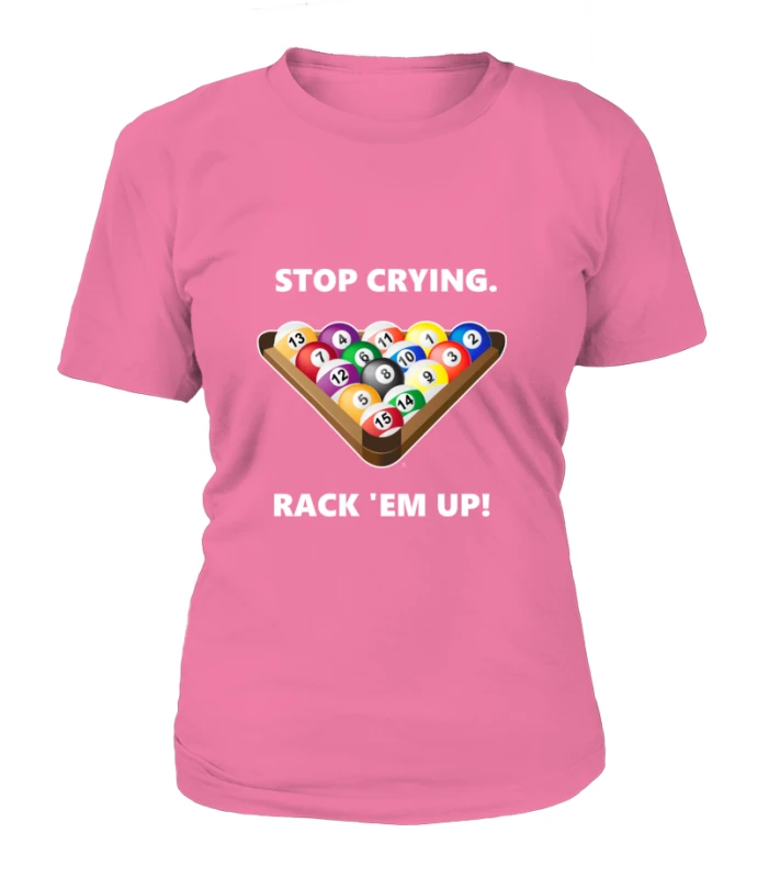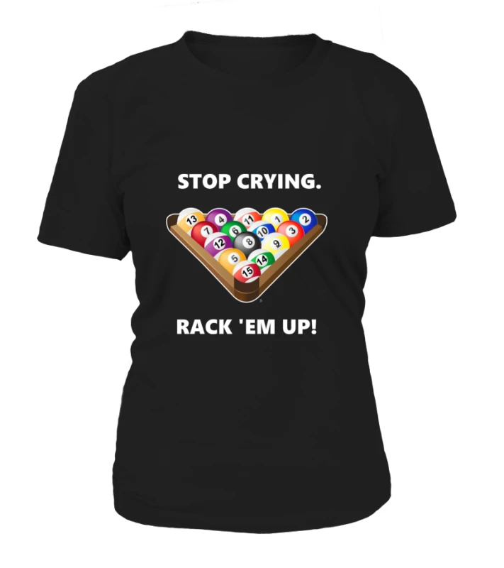 T-Shirt Rundhals Damen: Stop Crying, Rack ‚em Up. Größe XS-5XL, Verschiedene Farben