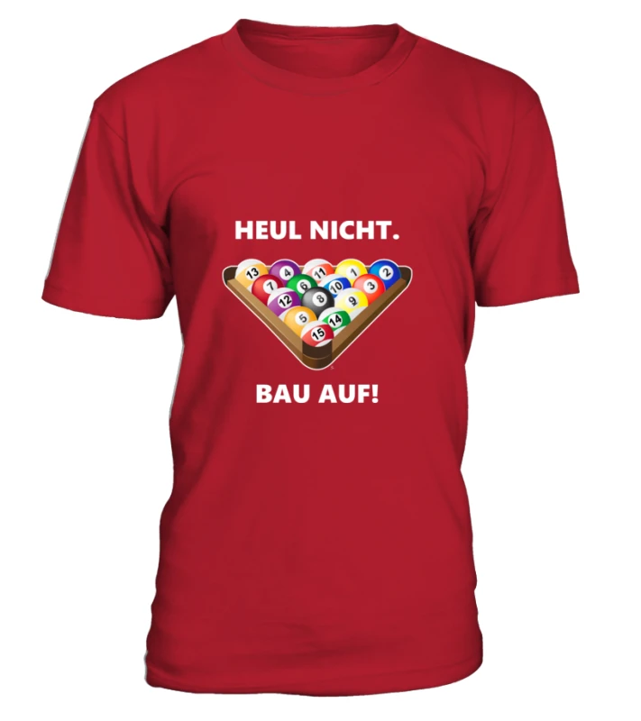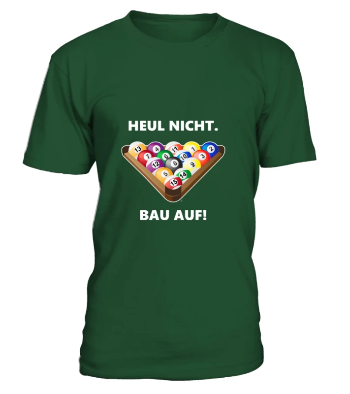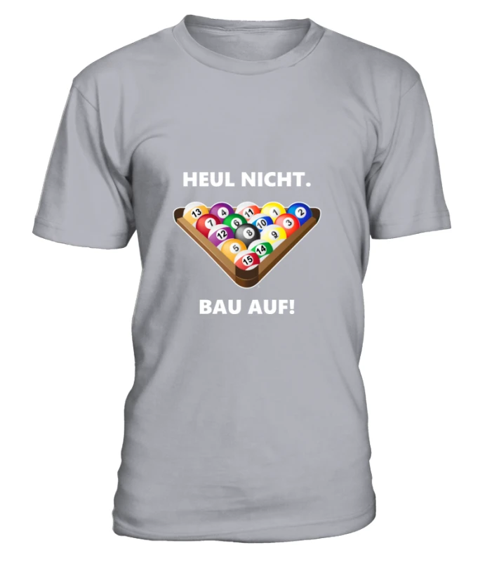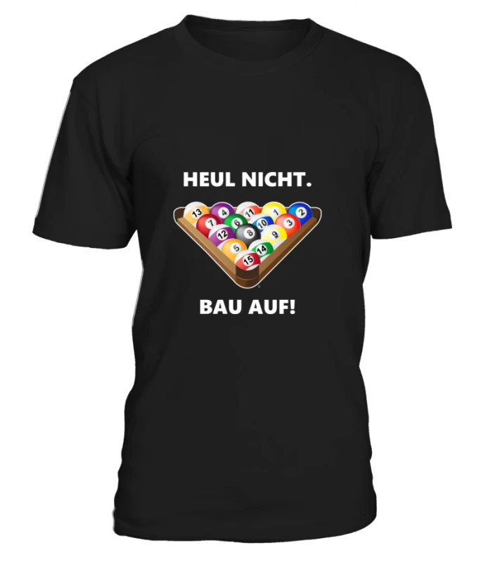 Der Tisch ist schief. Die Kugeln kleben. Es ist zu laut. Und außerdem hast Du ja eh nur Glück. Kommt Dir dieses Gejammer anderer Billardspieler bekannt vor? Dann zeig Ihnen mit diesem Shirt, was Du von dem Geheule hältst und sag Ihnen: „Heul nicht. Bau auf!“