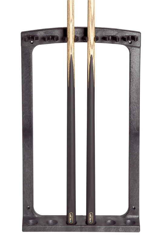 Mit diesem schicken Wandhalter aus stabilem Fiberglas lassen sich bis zu sechs Queues praktisch und elegant aufbewahren. Der Halter hat eine Größe von 60 x 36 cm und ist mit weichen Soft-Clips ausgestattet, die den Queues den nötigen Halt geben.