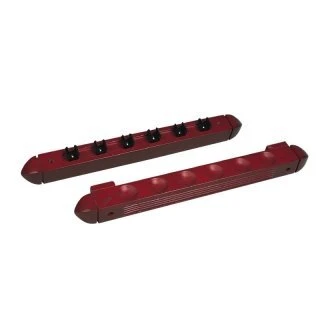 Diese einfache, aber schöne Wandhalterung für Queues darf in keinem Billardzimmer fehlen. Es fasst bis zu sechs Queues und ist auch für Billardsalons als günstige Wandbefestigung geeignet. Das untere Teil hat Vertiefungen für das untere der Queues, das obere Teil hat Klammern aus Kunststoff, die das Queue sicher halten. Einfach mit Schrauben und Dübeln an der Wand zu befestigen. Für Queues aller Spielarten geeignet.
